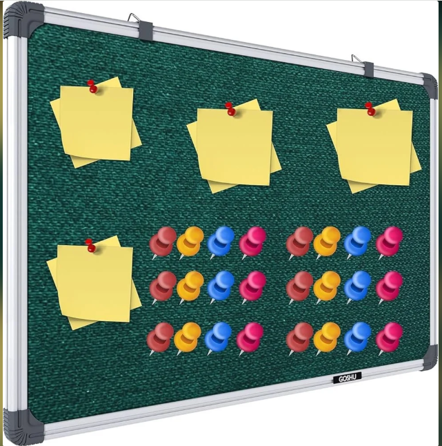 A pin-up board, also known as a bulletin board, is a versatile surface designed for displaying notices, reminders, photos, and other lightweight items using pins or thumbtacks. Typically made of cork, felt, or foam mounted on a sturdy backing, they come in various sizes and frames to suit different needs and aesthetics. Pin-up boards are invaluable tools for organization in homes, offices, and classrooms, providing a central and easily accessible space for sharing information, showcasing achievements, or simply keeping important details visible. Their simplicity and practicality make them a timeless communication and organizational aid.