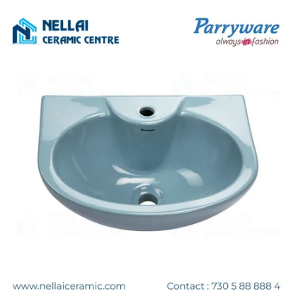 The Blue Ceramic Parryware Tapti Wash Basin is a sleek and modern addition to any bathroom.