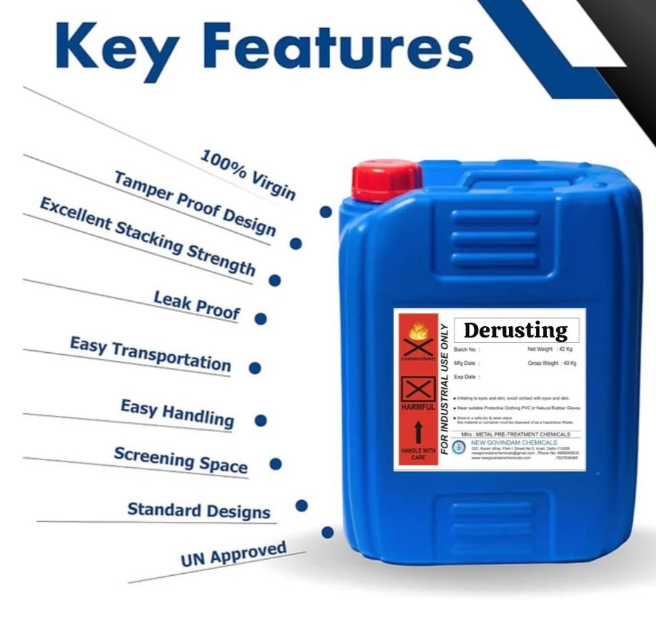 Derusting Pre-treatment Chemicals are chemicals which remove rust, oxides, and scale from metal surfaces prior to the final coating, plating, or painting process. Normally, they contain phosphoric acid, hydrochloric acid, and sulfuric acid-based solutions, with inhibitors to prevent over-etching. They leave a clean, active surface for better adhesion and protection against corrosion.