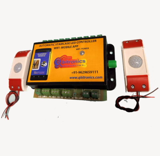 QBITSTRV1 controller is used for dynamic color (white) lighting of the stairs. The backlight is switched on with the controller subsequent steps, depending on the motion directions: ascending or descending and 4 steps by 4 steps also The controller is adapted to control the WHITE LED strips arranged in stair steps and possibly the staircase handrails. The controller has two programs of pattern changing: in the first program each stage is lit with a different color; in second program color at all steps is the same, but changes smoothly when the steps are turned on, lights on and off. Will change to another 4 steps at every turning on the light of the stairs The output set for stair lighting is the basis on which to base the intelligent lighting system. The technologically advanced controller and two efficient motion detectors are easy to install and trouble-free during later use. The stair lighting kit can be easily adapted to the number of stairs and to the size of the staircase. In most staircases, it is difficult to ensure adequate light levels with normal lighting. LED lighting is a completely new quality in this respect, because it is mounted to every step.The output set for stair lighting is the basis on which to base the intelligent lighting system. The technologically advanced controller and two efficient motion detectors are easy to install and trouble-free during later use. The stair lighting kit can be easily adapted to the number of stairs and to the size of the staircase. In most staircases, it is difficult to ensure adequate light levels with normal lighting. LED lighting is a completely new quality in this respect, because it is mounted to every step.
