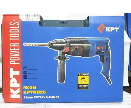 The KPT KPTRH26 Rotary Hammer is a robust and versatile tool designed for heavy-duty drilling, chiseling, and demolition applications in construction and renovation projects.