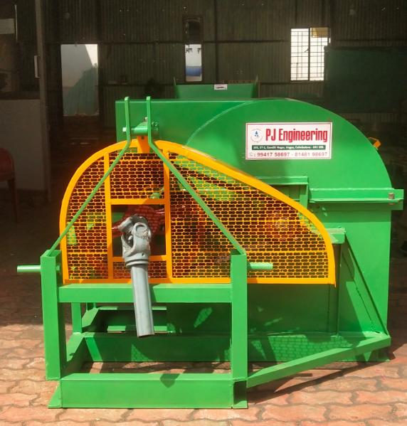 A 45HP shredder cum pulverizer is a tractor-operated machine designed to shred and pulverize agricultural waste, such as coconut fronds, banana stems, and other organic matter, into smaller pieces for use as organic manure.