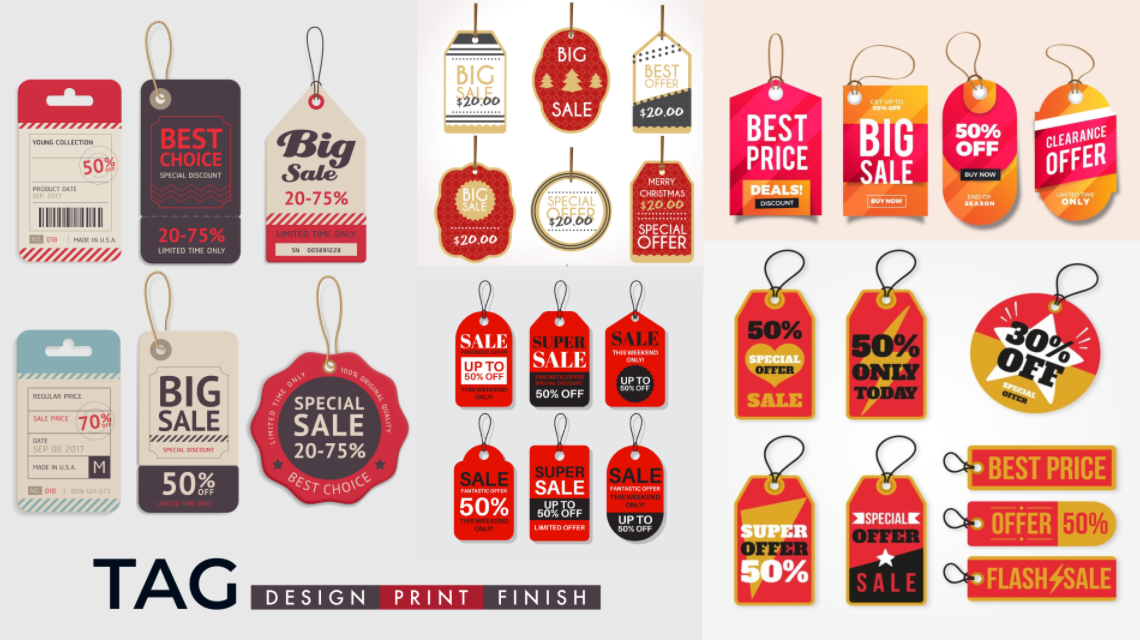 Tag printing is the process of creating tags, which are labels or small cards used to identify or label products and items. These tags can be made from various materials like paper, cardboard, plastic, or metal, and can be printed in different sizes, shapes, and colors. They are used across industries like clothing, retail, food, and beverage for branding, marketing, or product identification.