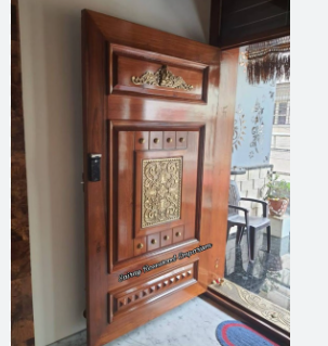 A Teak Main Door with Brass hardware is a classic and elegant choice for any home- Material: Solid Teak wood