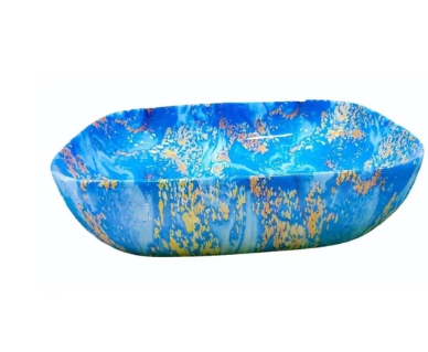 A stylish and elegant table top wash basin featuring a beautiful blue print design, perfect for adding a touch of sophistication to any bathroom.