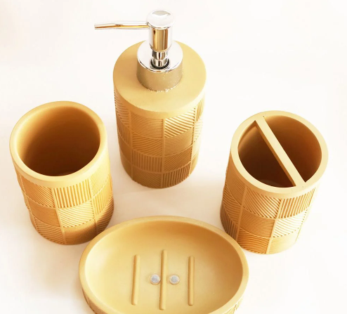 Polyresin Bathroom Set: Soap Dispenser, Soap Dish, Tooth Brush Holder and Tumbler