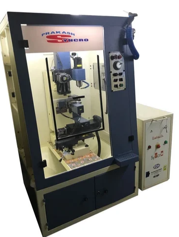Best “RDM” Brand Model “PRAKASH – SYNCRO” 6X computerised numerical control machine with latest technology controlling system and special user friendly software for Bangle and Ring for easy product development, 60000 RPM pneumatic tool clamping spindle for vertical with fastest and highly precision servo motor for major axis control of the machine with powder coated stand specially design for machine to get maximum and easy recovery of the metal, spray lubrication system for cooling of cutting tool and metal.