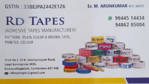 Established in the year 2018 in Coimbatore, Tamil Nadu We RD Enterprises is a Sole Proprietorship firm, engaged as the foremost Manufacturer of Plain BOPP Tape, Cello Tape, Printed BOPP Tape, and many more.