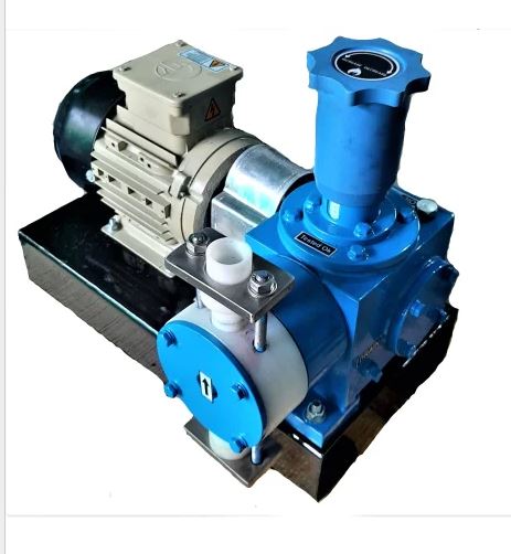 •Heavy duty construction designed & suitable for any hazardous & toxic liquids. •Leak proof design and easy for maintenance. •Internal worm gear mechanism with oil bath lubrication for longer life. •Mechanical Actuated spring loaded diaphragm. •Automatic flow variation through VFD by receiving 4-20 mAmp signal from PLC Panel. •Flow rate should be adjustable through control knob. •Compatible with All the Chemicals for Transfer or Dosing.