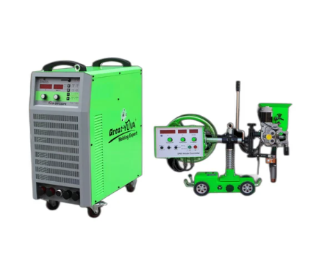• IGBT base CC-CV inverter DC submerged arc welder,MMA and Gouging.• High efficiency and high power factor resulting in• substantial energy saving over conventional SAW outfits.• Continuous adjusting of welding current, arc startingcurrent and thrust current.• 100% duty cycle and continuous welding.• Temperature protection and jack screw protection• Adopting 3 Ph half controlled bridge silicon rectifier.• 92% full load efficiency.• Over heating, over voltage and over current protection.• SAW welding can be done in either CV or CC mode.In the constant current mode of SAW welding, advanced adaptive control technology is utilized to obtain the most stable arc parameters, highest level of penetration, and excellent weld bead finish.Technical Parameter of Tractor:• Rated moving voltage DC110V, rated moving current 0.4A• Rated wire feeding voltage DC110V, rated wire feeding current 1A• Welding speed 0.2-1.5m/min• Wire feeding speed 0.30m/min• Wire diameter $ 2.0 - $ 6mm