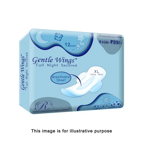 Gentle Wings Sanitary pads with best quality full night pads, pack of 12 pieces MRP 89 available at rupees 62