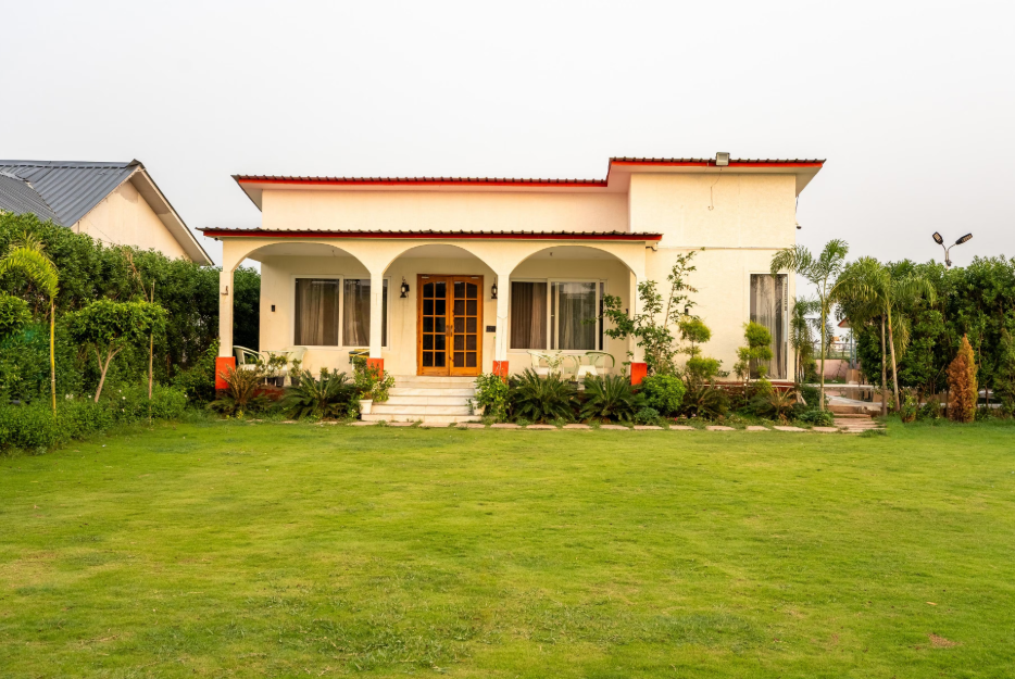 A farmhouse is a residential dwelling located on agricultural land, typically surrounded by farms, gardens, or natural landscapes, often functioning as a weekend retreat, holiday home, or, in modern contexts, a luxury getaway.