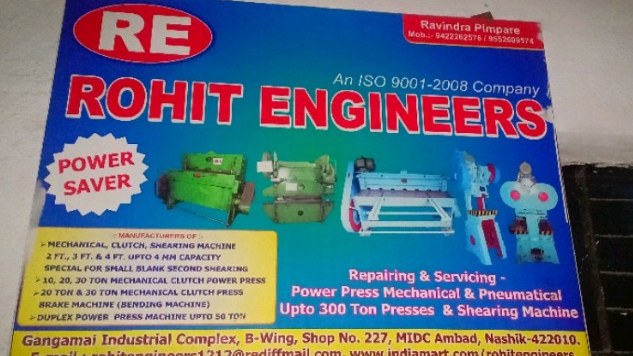 44 viewsEstablished in the year 2010 at Nashik, Maharashtra, we “Rohit Engineers” are a Sole Proprietorship based firm, engaged as the foremost Manufacturer of Press Machine, Shearing Machine, etc. We also provide Shearing Machine Repairing Service. Our products are high in demand due to their premium quality and affordable prices. Furthermore, we ensure to timely deliver these products to our clients, through this we have gained a huge clients base in the market.Rohit Engineers Nashik, were established in the year 2010 is a professional, prominent company dedicated to develop high yielding small series special purpose sheet metal industries machinery. We have a proficient and experienced team with a go-getter attitude. We have a dynamic and positive approach towards our customers and center all our activities on them. Our machinery are custom made to suit their needs. Our systems work in co-ordination to produce excellent products and services. The balance between our products and services are much appreciated by our valued customers. We deal with precision-engineered range of Standard Power Press Machine, Industrial Machine, Shearing Machine, Special Purpose Industrial Machine, Shearing Machine, Industrial Brakes & Clutches, Power Press machine, all types of power presses.Our infrastructure caters for high end mechanical machinery which have high functional capacities and are able to produce in bulk amounts. Our company has a capacious manufacturing unit, qualified production staff and high end machinery. Our products are flawless, perfect with dimensional accuracies. Our quality consciousness has enabled our products which are subjected to tests of excellence. The performance levels of our machinery are in line with the international standards. Some of reputed clients are Om engineering Nasik, Precision Auto Industries PVT LTD, Legrand India Pvt Ltd. and Alf Engineering PVT LTD.