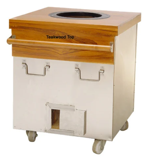 This one is as good loking as it is versatile. Clay tandoor inside the wooden top gives it a classic look that goes well with the decor of the modern commercial coking establishment. It is rugged, stylish and engineered to perform. For an additional cost the entire oven can be empaneled with teak. Though all tandoors are fired with charcoal, but when it comes to the house of munnilal, you have the option of buying a lpg fitted tandoor at an additional cost.