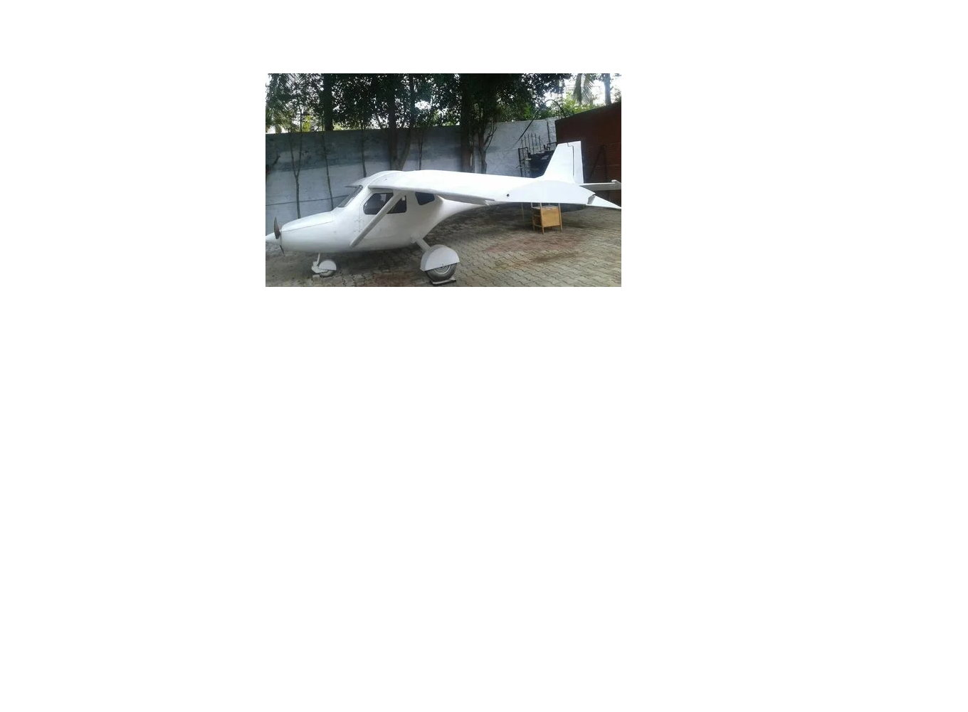 This is Beach Craft two seater trainer in composite (Glass Fiber) 23 feet long, 33 feet wing span complete functional 1:1 scale model. Costing 8 Lakhs in Bengaluru.