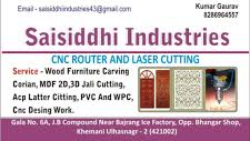 29 viewsIncepted in the year 2021, "Saisiddhi Industries” is distinguished Manufacturer and Wholesaler offering an enormous consignment of Profile Sheets, Name Plate & Corian Temple Mandir etc. Our range of products include 7 Running Horses Mural, Radha Krishna Wall Mural, 7 Horse Wall Decor, 18mm Rectangular MDF Wall Decor and Radhakrishnan Wall mural. Our product range includes a wide range of Carved Wood Doors, Mdf Jali Cutting, CNC Router Cutting Services and Mdf Jali Cutting Service. Providing you the best range of Mdf Wall Panel, 3d Foam Wall Panel, 3d Wall Panel, Green Panel Mdf Board and Green Panel Max Mdf Board with effective & timely delivery. Manufacturer of a wide range of products which include 75mm Wooden Carving Door, Chhatrapati Shivaji Maharaj Wall murals, Ganpati Bappa mandir and MDF wall decor.