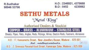 2 viewsSethu Metals In Madurai Is One Of The Leading Businesses In The Aluminium Pipe Dealers. Also Known For Pipe Dealers, Stainless Steel Pipe Dealers, Wire Dealers, Steel Merchants, Wire Mesh Dealers, Pipe Fitting Dealers, Aluminium Sheet Dealers, Stainless Steel Sheet Dealers And Much More. Find Address, Contact Number, Reviews & Ratings, Photos, Maps Of Sethu Metals, Madurai.
