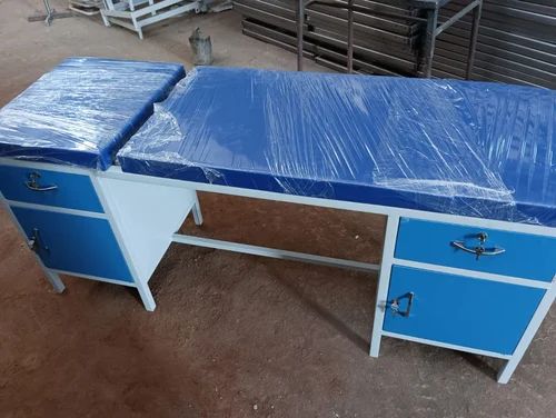 deluxe examination table with both sides , double drawers and cabinets, with double step stool additional , top 3inch mattress and head side elevation available