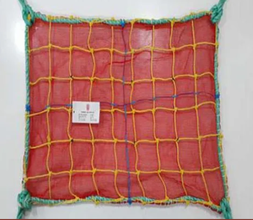 4mm Knotted + MonofilamentType Safety Net Border & Tie Cord : P.P. Rope Dia 12mm IS 5175:1992 Mesh / Inner Rope : P.P. Rope Dia 6mm IS 5175:1992 Mesh Size : 100mm x 100mm Sq. / 4”x 4” Square Second Layer : HDPE Monofilament120 GSM Fabricating : Knotted Type Tie Cord & Handle : Tie cords 2metre long at four corners and 1meter long at every 2 metre Standards : As per IS:11057:1982 Standard Size : 5 Mtr x 10 Mtr / 3Mtr x 10 Mtr Options of customized sizes arealso available*.