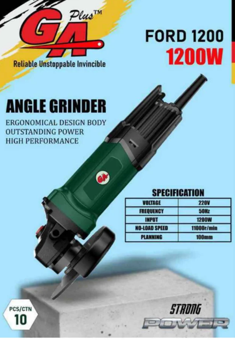 GA Ford 1200 4 inch (100mm) Angle Grinder 1200 Watt has ERGONOMICAL DESIGN BODY , OUTSTANDING POWER , HIGH PERFORMANCE .