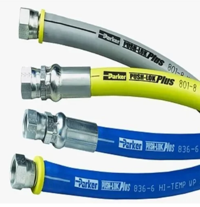 Parker’s Push-Lok multipurpose hose line features the widest fluid compatibility, application range and size range in the industry. The Push-Lok hydraulic hose line also incorporates the highest working pressure in all sizes, making it the most versatile general-purpose hose available. The Push-Lok system is an easy to use push-on system with no clamps or special tooling required. The unique seal of Push-Lok hydraulic hoses ensures reliable, durable, and leak-free service. With Parker’s exclusive color-code system, you can inventory, maintain, and identify your hose needs easily and efficiently.Push-Lok Plus Multipurpose Hose 200-350 PSI – 801 Hose Parker's 801 hose has a pressure range of 200-350 PSI, and is amongst the Push-Lok Plus multipurpose hose line which features the widest fluid compatibility, application range and size range in the industry.Push-Lok Plus High Temperature Multipurpose Hose 300-400 PSI – 836 Hose