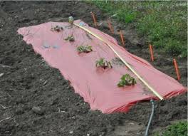 This Selective Reflective Mulch (SRM) enhances growth and yield of several crops, especially tomatoes and developing strawberries. The red color reflects intensified red light onto the plant that in turn has shown an impact on growth and yields 20% higher than with black plastic.