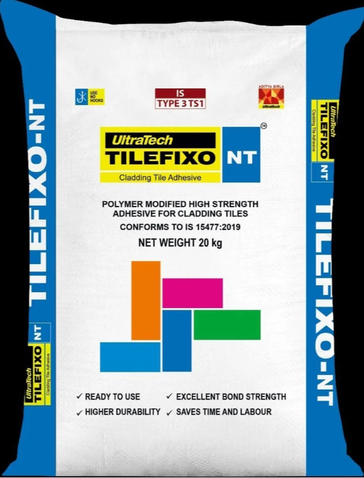 UltraTech TILEFIXO is a polymer modified cement based high performance, high strength, high quality tile adhesive developed to fix tiles, Natural Stones over walls and floors. Suitable for both internal and external, thin bed applications. There are four variant of TILEFIXO for different application.