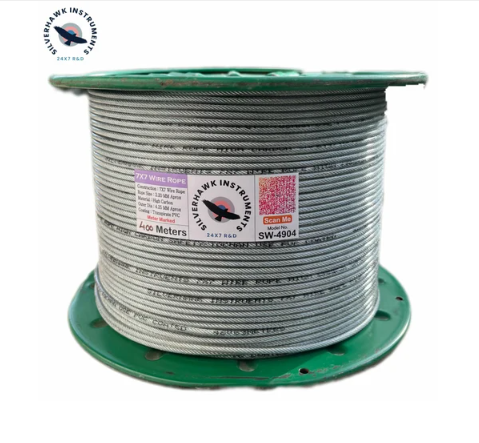 Silverhawk SW4904 High Load Capacity Safety Wire Is Made With Premium Quality HIGH CARBON/STAINLESS STELL WIRE ROPE,coating Of Oil Free Water Color Transparent PVC Polymer Suitable For Very Low/high Temperature weather conditions and Meter To Meter Marked For Accurate Quantity.