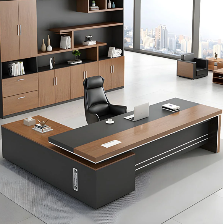 Modern office desks in 2026 range from ergonomic height-adjustable standing desks to luxury executive L-shaped workstations and minimalist solid wood writing tables. For active environments, electric sit-stand desks with memory presets allow you to switch between postures throughout the day. If space and storage are priorities, L-shaped corner desks provide extensive surface area and integrated drawers for organization.