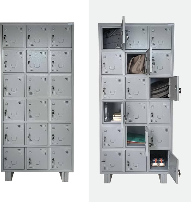 A worker locker is a secure storage unit designed for employees to store personal belongings, uniforms, and tools in workplaces such as factories, offices, and warehouses. Typically made from durable CRCA (Cold Rolled Close Annealed) or mild steel, these lockers feature various configurations ranging from single-door units to multi-compartment systems with up to 30 or more doors.