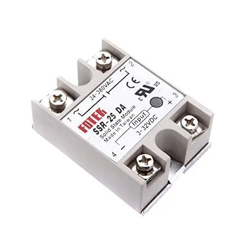 This is DC To AC SSR-40DA Solid State Relay Module 3-32VDC/24-380VAC 40A. A solid state relay (SSR) allows you to control high-current AC loads from lower voltage DC control circuitry. Solid state relays have several advantages over mechanical relays.