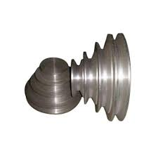 A v-belt is a flexible machine element used that transmits power between a set of grooved pulleys or sheaves. They are characterized by their trapezium cross-section. V-belts are used because of their ability to wedge tightly into the grooves of the pulley.