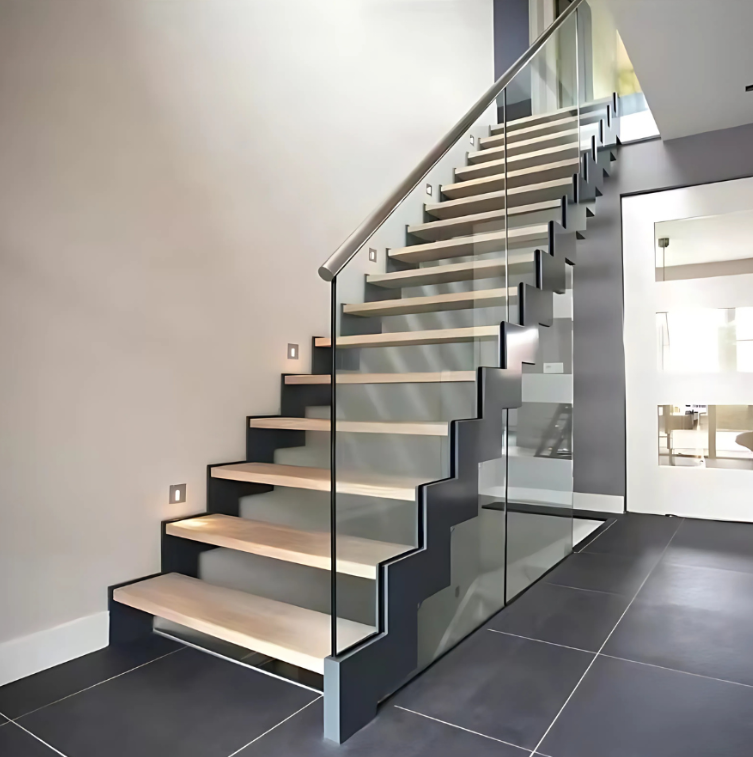 Modular straight staircase with clean lines and easy customization. Compatible with wood, composite, metal treads, and various railing styles.