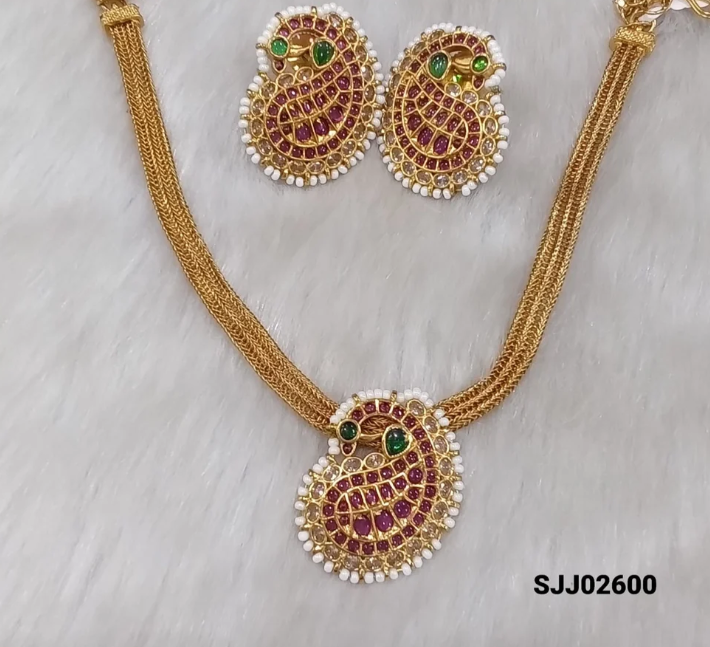 Matt Antique Premium Short Necklace With Kemp Stones .