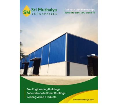 Established in the year 2018 at Coimbatore, Tamil Nadu, we “Sri Muthaiya Enterprises” are a Sole Proprietorship firm, engaged as the foremost Manufacturer of Roofing Sheets, Turbo Ventilator, Sandwich Puf Panel, Prefabricated Steel Building, etc. Our products are high in demand due to their premium quality and affordable prices. Furthermore, we ensure to timely deliver these products to our clients, through this we have gained a huge clients base, in the market.