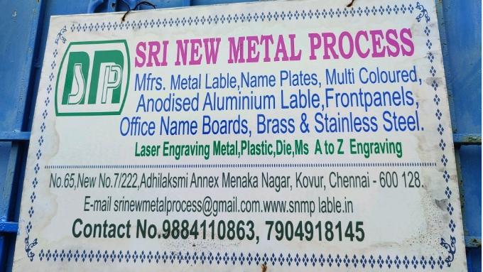 Established as a Proprietor firm in the year 2013, we “Sri New Metal Process” are a leading Manufacturer And Trader of a wide range of Name Plate, Vinyl Sticker, Barcode Label, Name Board etc.