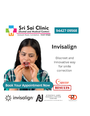 "Welcome to Sri Sai Dental Clinic, a trusted dental clinic in Coimbatore, located on Avinashi Road. Led by Dr. P. Vidhiyasagar, MDS, Implantologist and Maxillofacial Prosthodontist, and Dr. R. Suganya, BDS, Cosmetic Dental Surgeon, we offer advanced, personalized care using the latest technology. Our services include dental implants, invisible aligners, CBCT scans, smile correction, laser teeth whitening, root canals, braces, veneers, and dentures. With a focus on comfort, hygiene, and long-term results, we are committed to your oral health and smile transformation. Book your appointment today with one of the best dentists in Coimbatore."
