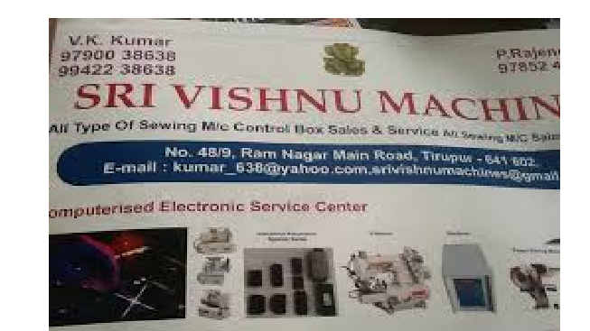 111 viewsEstablished in the year 2014 at Tiruppur, Tamil Nadu, we “Sri Vishnu Machines” are a Sole Proprietorship (Individual) based firm, engaged as the trader and retailer of Sewing Machine, Cutting Machine, Sewing Machine Control Box, TN industrial Connect