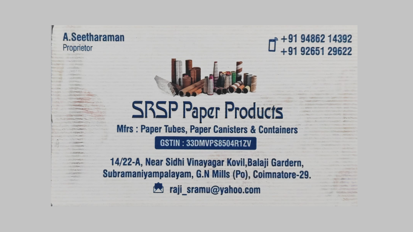 60 viewsEstablished in 2018, SRSP Paper Products is a distinguished manufacturer of a superior range of paper-based packaging solutions, including Paper Tubes, Paper Containers, Paper Cans, and allied products. Operating as a Sole Proprietorship, the company is strategically headquartered in Subramanyam Palayam, Coimbatore, Tamil Nadu, where all core business activities are meticulously planned, executed, and supervised by a team of experienced professionals. Driven by a deep commitment to excellence, we place our customers at the center of everything we do, ensuring their specific requirements are fulfilled with precision, consistency, and integrity. Our unwavering focus on quality, timely delivery, and customer satisfaction has enabled us to build long-term relationships and earn a strong, credible reputation in the industry. We supply high-quality canisters for packaging a wide range of products, including copper bottles, Ayurvedic medicines, tea powder, T-shirts, edible items, puttu flour, edible straws, calendars, drawings, various spice powders, oil bottles, and honey bottles. Our packaging solutions are designed to ensure product safety, hygiene, durability, and attractive presentation across multiple industries.