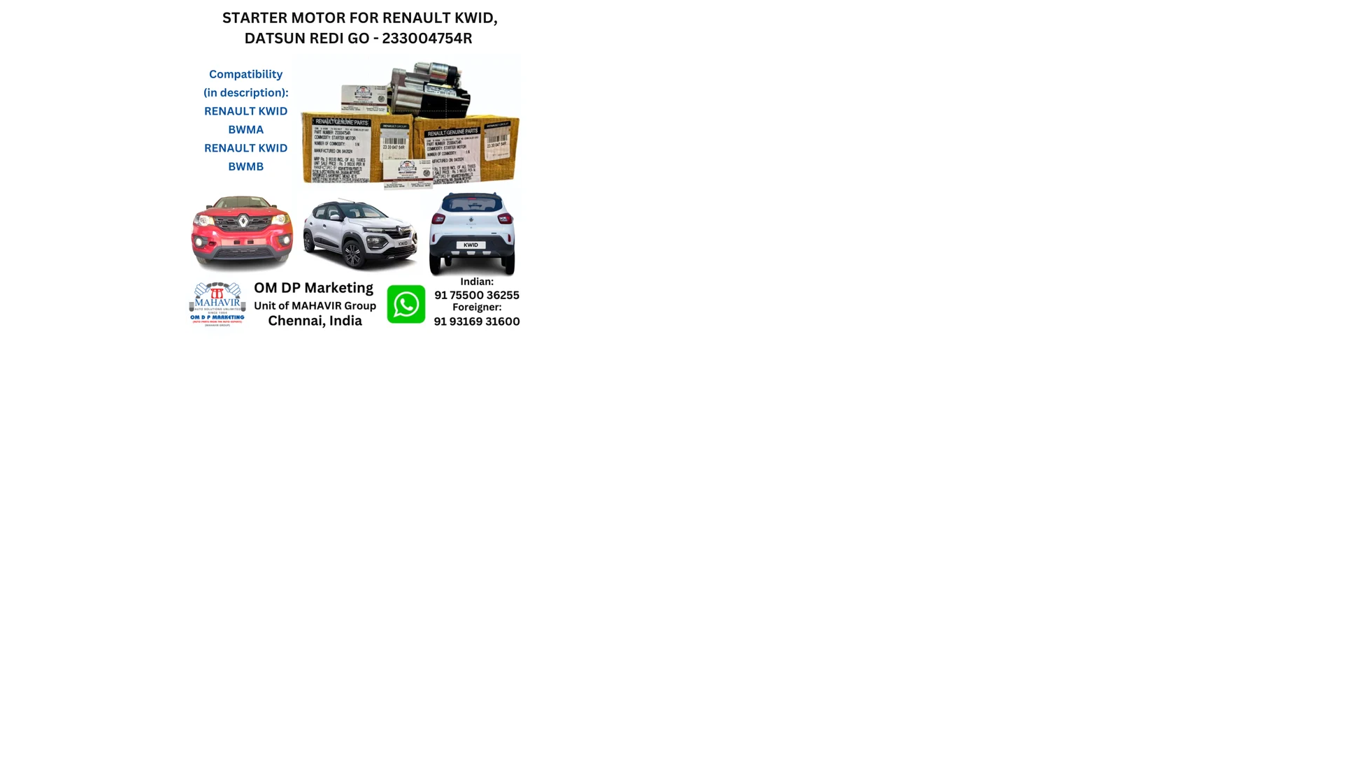 STARTER MOTOR FOR RENAULT KWID, DATSUN REDI GO 1ST GEN - 233004754R