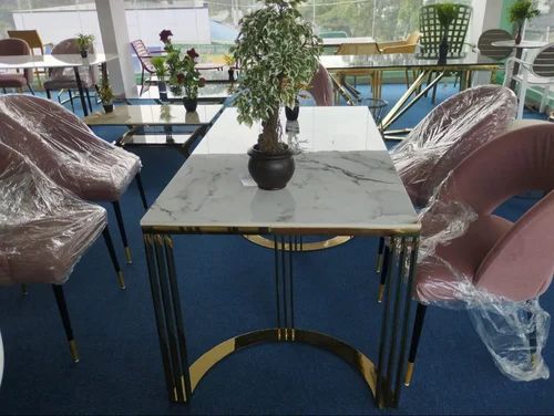 Rectangular Stainless Steel 4 Seater SS Marble Top Dining Table Set