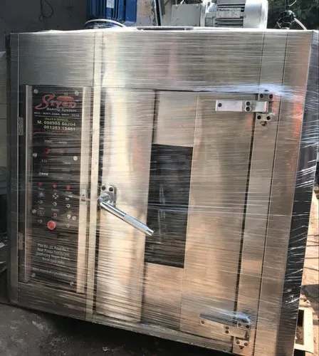 A rotary rack oven is essentially a convection oven with removable trolley racks. Air is heated by burning fuel in a chamber. Fuel can be diesel (most popular), LPG, wood, coal, and electric. Air is heated by blowing air on the chamber, using a centrifugal blower.