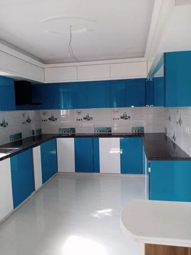 Modern L-Shape Green Plywood Modular Kitchen