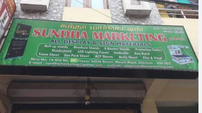 Sundha Marketing' is a newly established organization, which had laid its foundation in the city of Chennai (Tamil Nadu, India) in the year 2010. Engaged in trading and wholesaling the widest array of Promotional Display Stands, Tables and Canopies, our organization has gained instant success in the industry. We also provide Sheets and Printing Inks. No sooner has the company entered the domestic markets when it gained recognition for offering a range of impeccable quality products. All our business activities revolve around reaching upto the expectations of our clients at all levels, including quality, quantity, location, time and cost.