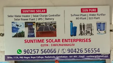Established in the year 2011 at Coimbatore, Tamil Nadu, we "Suntime Solar Enterprises" are a Ownership Type based firm, engaged as the foremost Wholesaler and Retailer of RO Water Purifier, Solar Water Heater, RO Plant, Water Softener etc.
