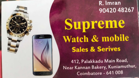7 viewsSupreme Watch & Mobiles Established in 2001, Located in Kuniyamuthur, Coimbatore. We Specialize in the Sales of High-Quality Clocks and Watches. With Over Two Decades of Experience, We Offer a Wide Range of Timepieces from Renowned Brands, Catering to Various Styles and Budgets.