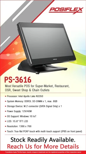 posiflex ps 3616 15. 6" ip rated 65 front panel, fanfree