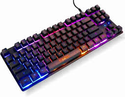 A computer keyboard is an input device used to enter characters and functions into the computer system by pressing buttons, or keys. It is the primary device used to enter text. A keyboard typically contains keys for individual letters, numbers and special characters, as well as keys for specific functions.